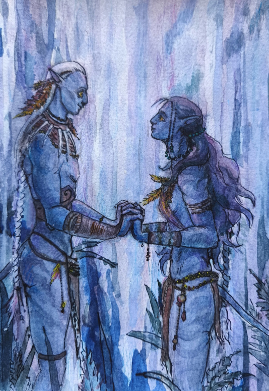 Данный арт является кроссовером фанфика "Дарующая нежность" и фильма Аватар, где Киллуа является коренным жителем Пандоры, а Леорио аватаром