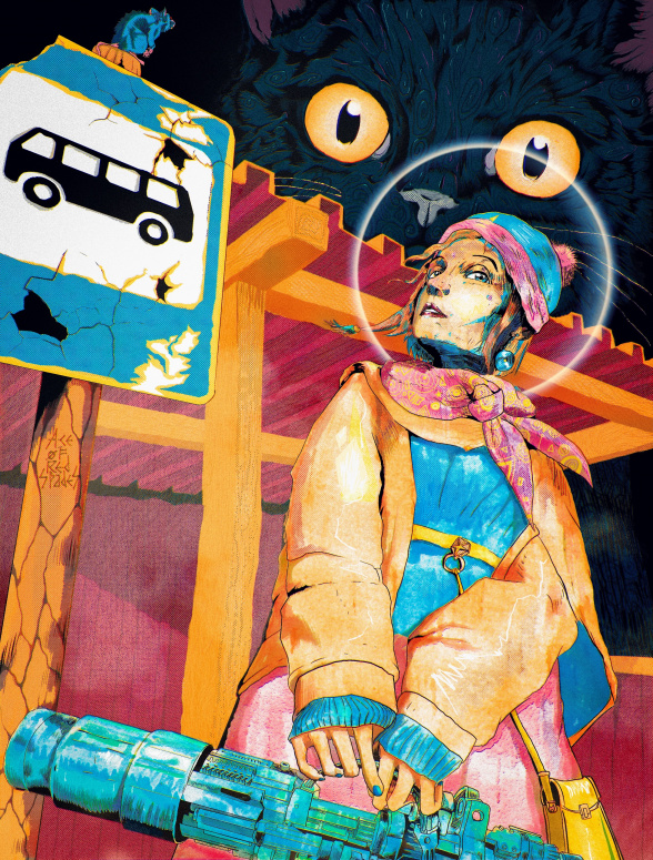 #мышь #кот #девушка #остановка #знак #пушка #осень
