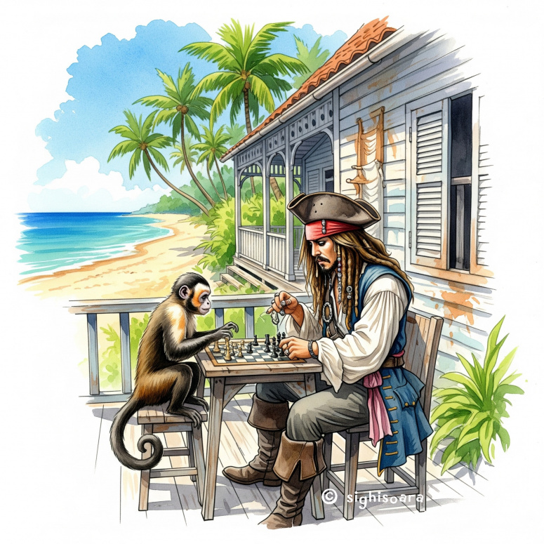 Джек Воробей, обезьянка и шахматы