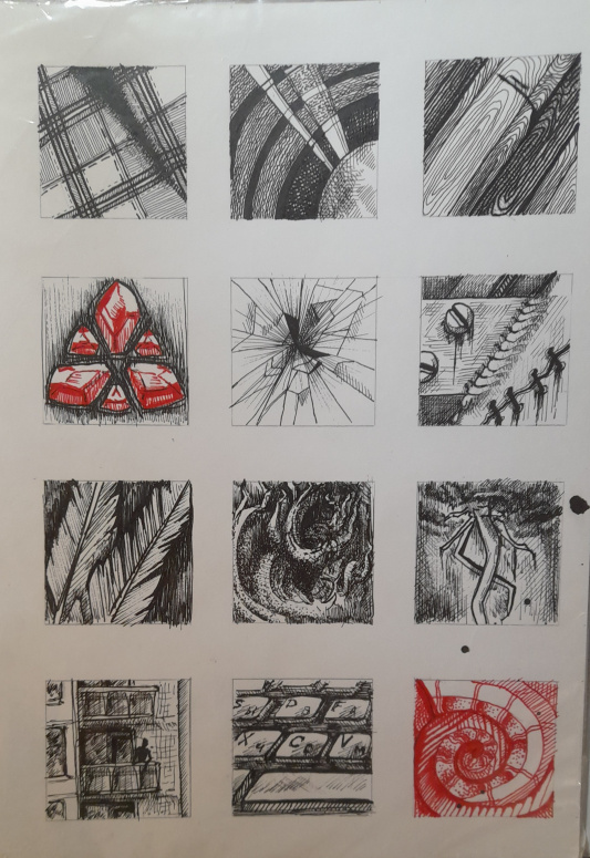 1 ряд: клетчатая ткань, виниловая пластинка, деревянный наличник;