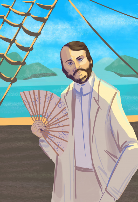 Иван Александрович Гончаров совершает моцион на борту фрегата "Паллада", нудит, что пейзаж в Нагасаки недостаточно яркий, что переговоры опять затягиваются...