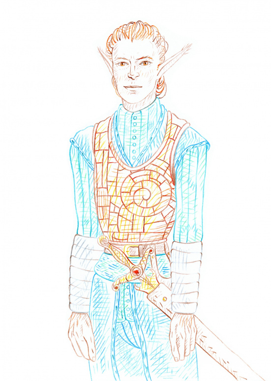 Когда Сандра Кек полностью закончила новеллу "Поцелуй принцессы", я так сильно обрадовалась, что нарисовала "Счастливое замужество", потом появился "Наследник". Это первый вариант, как должен выглядеть сын Мальтазара и Селении. Я раньше не публиковала эту работу, потому что мне не совсем нравится его костюм и внешний вид в целом. Ещё сама фигура очень статична.