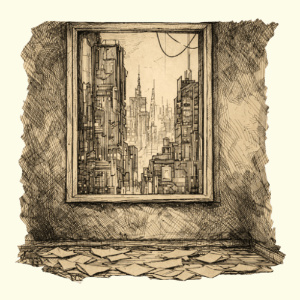 Арт к стихотворению «Тесная комната». Окно-картина в тесной, пыльной комнате.