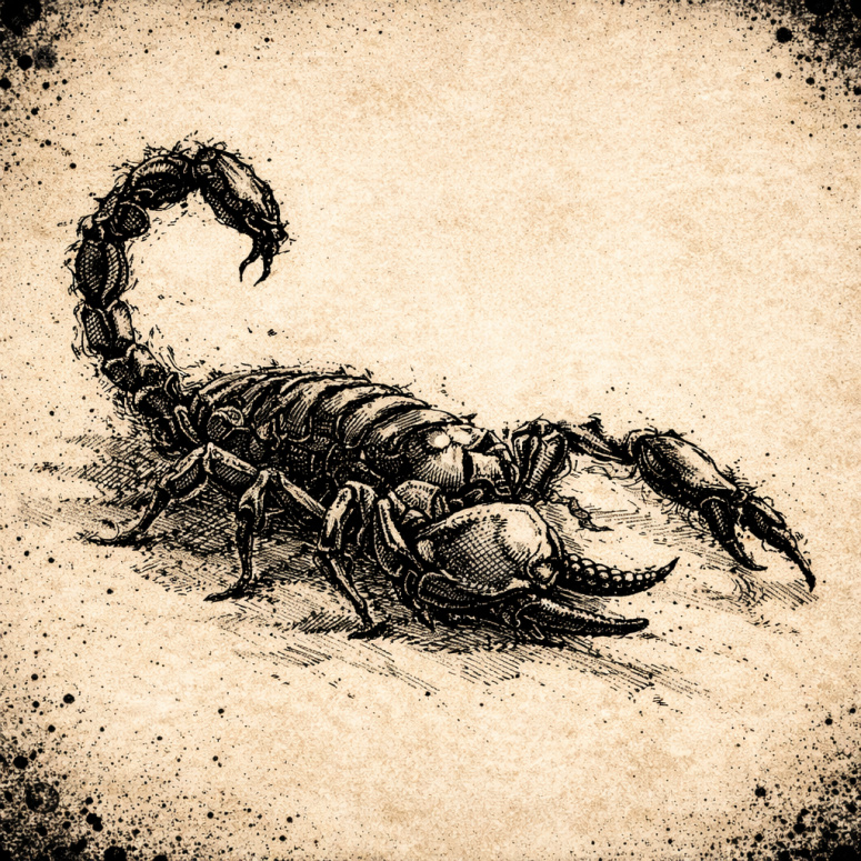 Арт к стихотворению «Жало». Скорпион. Чернила на древнем пергаменте.
