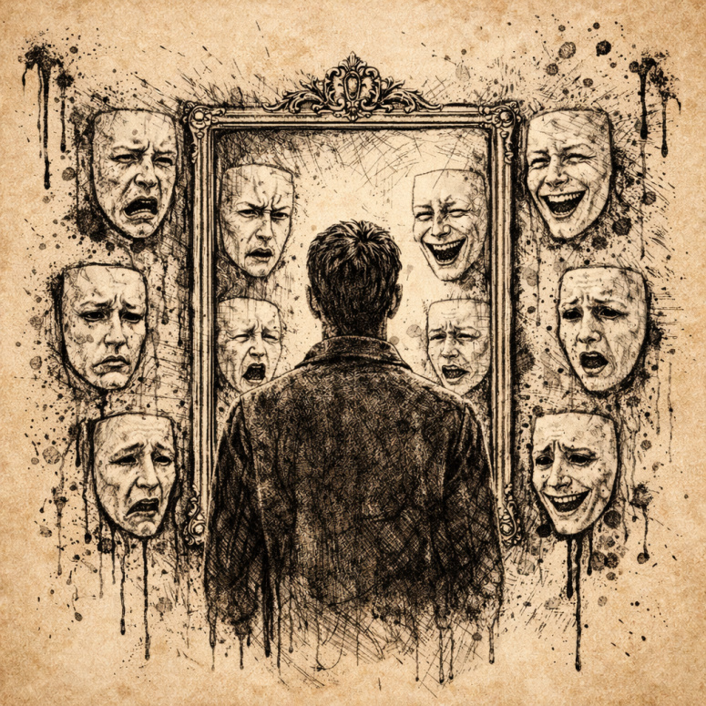 Арт к стихотворению «Мгновение сна». Зеркала эмоций. Чернила на древнем пергаменте.