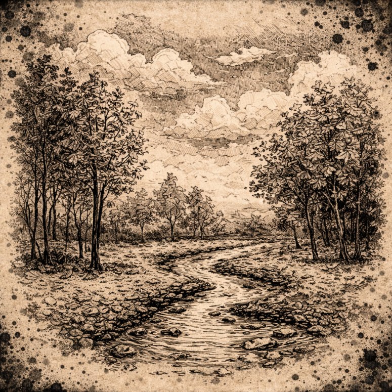 Арт к стихотворению «Образ». Осенний пейзаж. Чернила на древнем пергаменте.