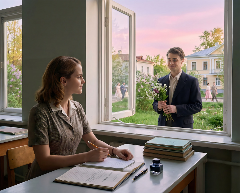 Весна на заречной улице, с актёрами -Гарри Поттер и Гермиона Поттер. Alex Savchenco и Helen Sergeevna. Алекс пришёл к Хелен пригласить на свидание, ведь для него она не учительница, а любимая. Harry and Hermione FOREVER!