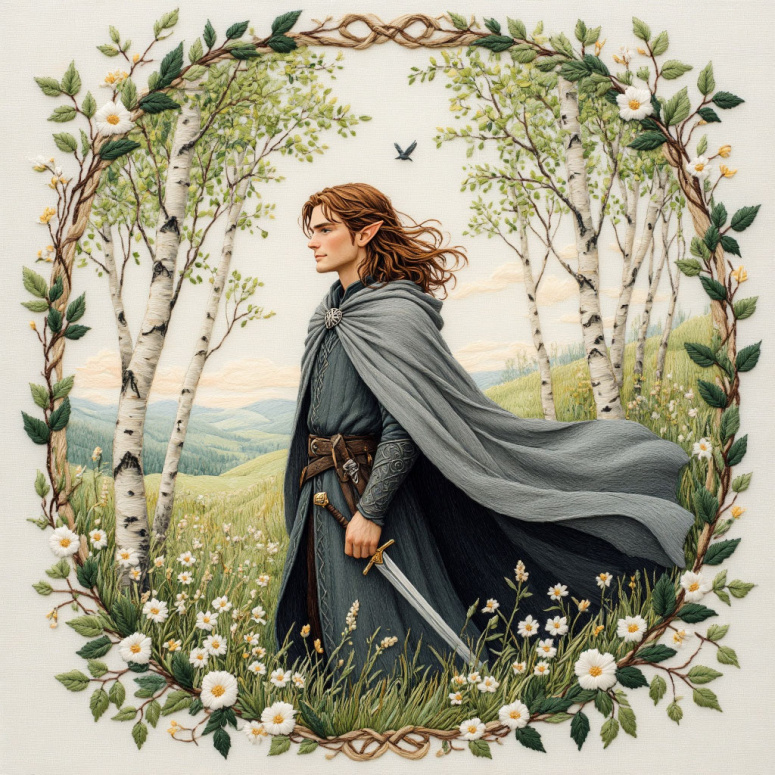Пыталась сгенерировать портрет Арагорна - а получился рыжий эльф. Будет Маэдросом)