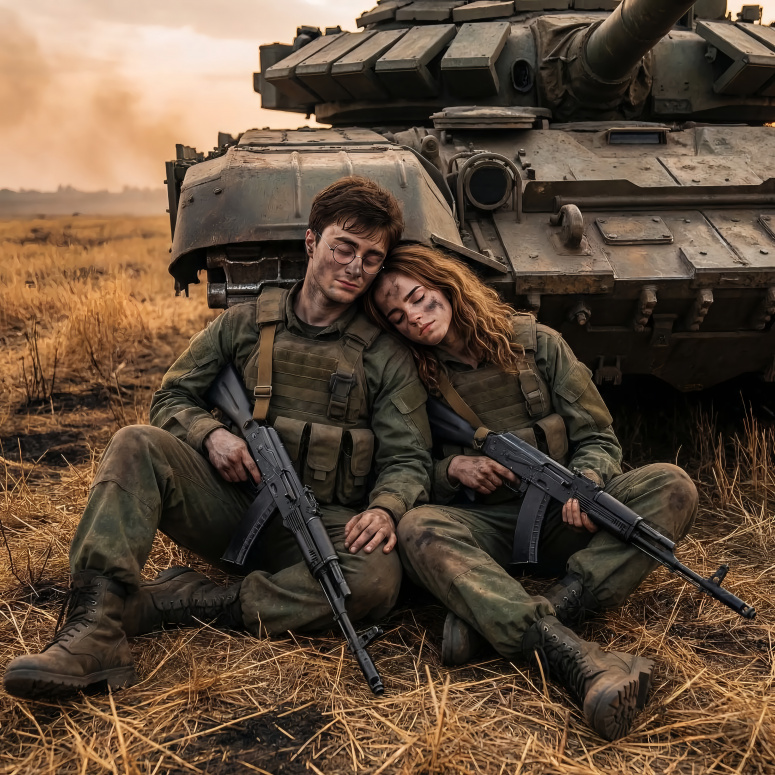 После длительной вылазки -лейтенанты ГРУ Игорь Гончаров и Гермиона Баринова. Напряжение не отпустило, их оружие готово к бою, но сейчас можно расслабиться, свои, наконец то.