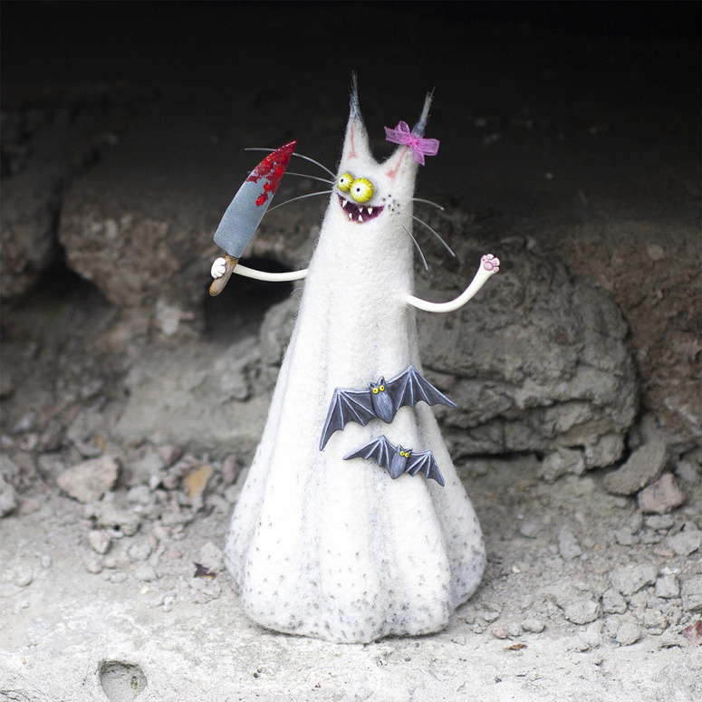 дрожите и цепенейте! Материалы: шерсть, полимерная глина, акрил,