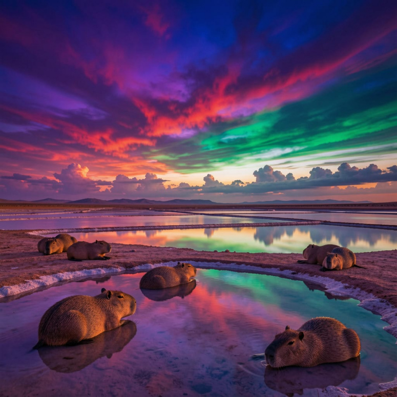 #ИИ #капибары #закат #озеро #ориджинал