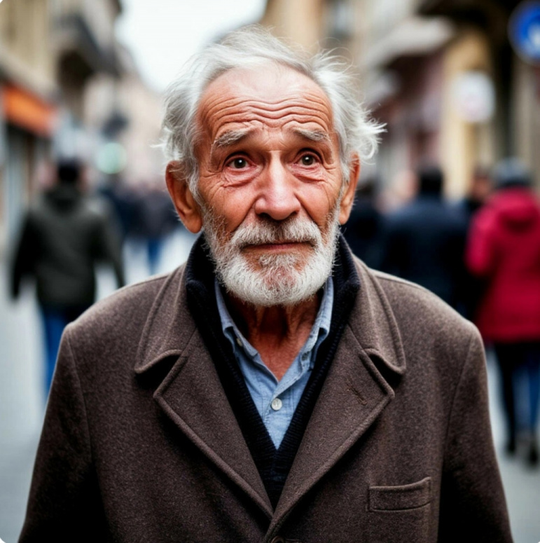 По улице шел старичок. Он растерянно улыбался и останавливал прохожих.