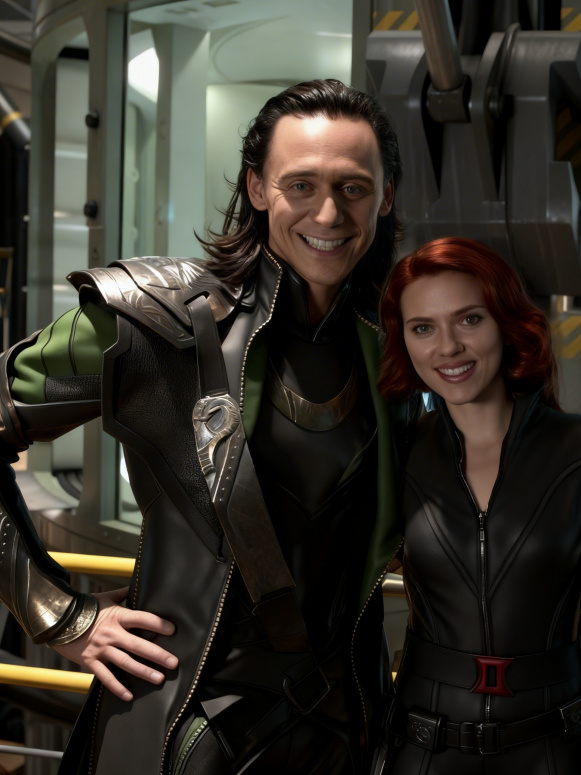 Том и Скарлетт за кадром фильма "Мстители".