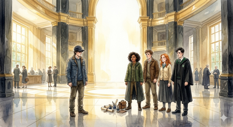 Арт к главе 10: сентябрь 1999 В просторном Атриуме Министерства магии стоят пятеро новых стажеров.