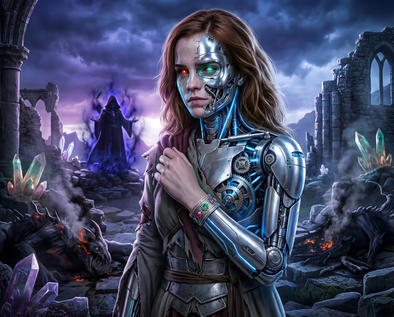 После финальной битвы, Гермиона Грейнджер решает использовать свои навыки волшебства и креативное мышление для изучения новых возможностей. Она натыкается на древний артефакт — магический браслет, способный сочетать магию и технологии. С его помощью Гермиона получает уникальную способность превращаться в Терминатора — бесстрашного киборга с невероятной физической силой и скоростью.