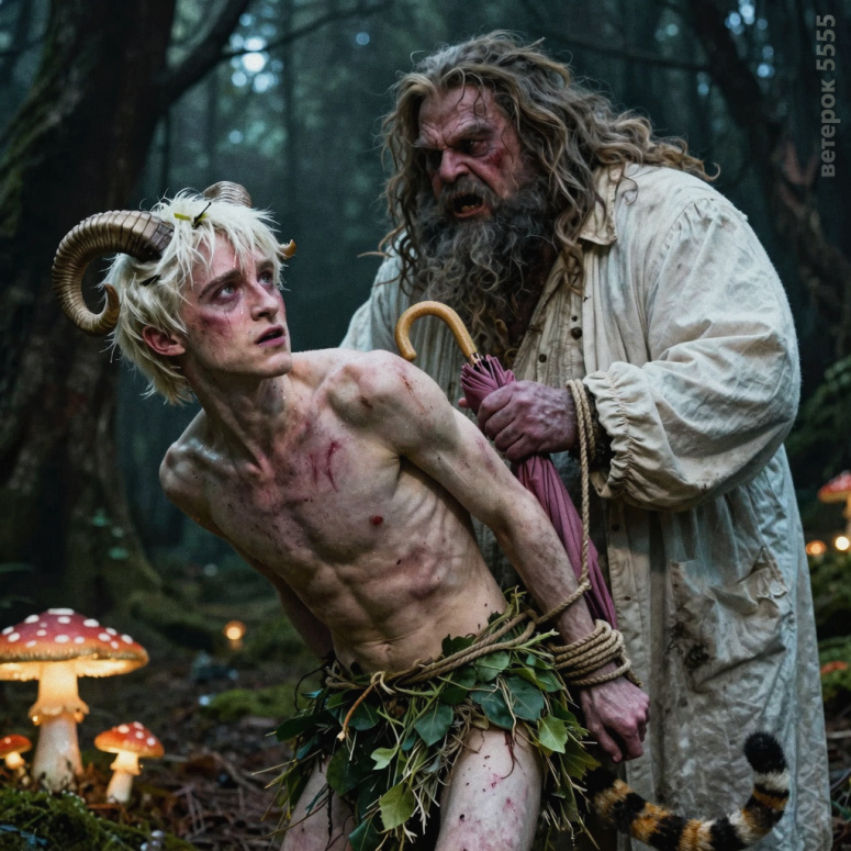 Драко боролся с отчаянием, всё тело крутило болью, а рога, казалось, собрались отвалиться вместе с лобной костью. Рядом бубнил злой Хагрид: «Сейчас… Обломаю я тебе рОги, ох обломаю… Да и сдам Персику, пущай такое добро забирает… Только – моё виски? Ну, раззудись, плечо! Размахнись, рука! Сейчас! Сейчас…»… У Драко по щеке скатилась слеза, и ещё, и ещё… Ведь, казалось, ещё чуть-чуть и он поймает удачу за хвост. Увы! За хвост поймали его. Лесная тропинка уже вышла на финишную прямую, Драко уже разглядел приметный валун: чёрный камень с трещиной напоминал лоб шрамоголового придурка. Когда Драко в первый раз разглядывал чудо природы, то рассмеялся: «У Поттера лоб тоже каменный. Авадой не прошибёшь!» Драко уже мысленно видел пенёк по ту сторону защитного барьера,где припрятал волшебную палочку, уже припоминал заклинания, чтобы остановить получеловека, если он проскочит вслед за Малфоем, уже даже представил, как верещит Хагрид, когда он подпалит ему бороду, уже даже окунулся в мечты о Франции, домовиках и ванне, уже даже… Рога! Рога, трансфигурированные пьяным лесником, получились на диво крепкими, весомыми. Наросты причиняли не боль, не моральные страдания, они смещали центр тяжести исхудавшего тела даже больше, чем пресловутые дыньки, которые наколдовывал Малфою похабный лесник. А ещё рога за всё цеплялись. Вот и всё! Зацепились рога за сук, и вместо последнего рывка к заветному камню, они колесом прокрутили его исхудавшее тельце на проклятой деревяшке, и Драко летит назад, прямо в живот получеловека… Ох, и мутузил его Хагрид, когда проблевался, отдышался, да оклемался после тарана, схватил Драко за проклятые рога и возюкал его рожей по земле. Драко тонул в омуте отчаяния, а Хагрид не унимается: «Сейчас… Обломаю я тебе рОги, ох обломаю… Да и сдам Персику, пущай такое добро забирает… Только – моё виски? Ну, раззудись, плечо! Размахнись, рука! Сейчас! Сейчас..."