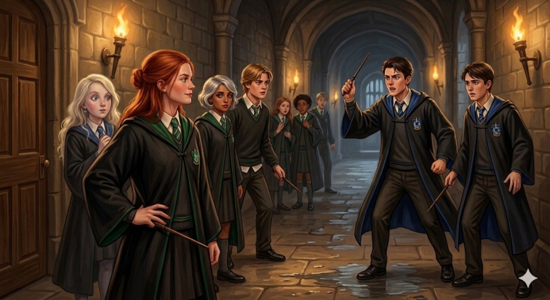 Весна 1995 года. Джинни решительно защищает Луну от задирав-когтевранцев. Пока Луна изумленно смотрит на защитницу, Смита и Тобиас встают за спиной Джинни, образуя единый фронт.
