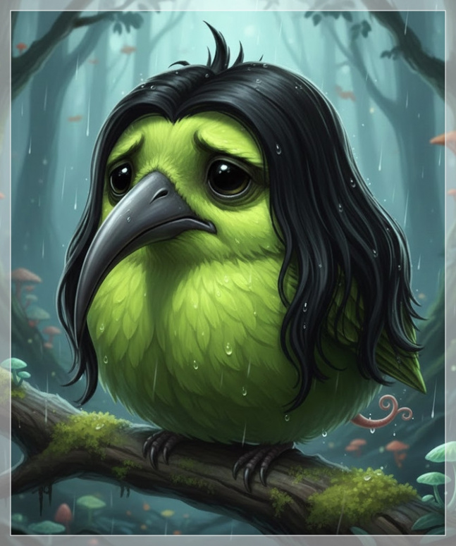 И Гермиона, бросившаяся было ощупывать любимого на предмет повреждений, и Гарри, позабывший о своих шишках и ушибах, и Луна, невольно ставшая причиной «кораблекрушения», дружно уставились на кучу снейповского барахла, из которой выползло сердито бормочущее нечто. Внешне оно напоминало новозеландскую птицу киви, только с причёской, достойной самого Снейпа.
