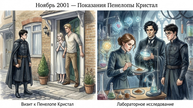 Ноябрь 2001 года. Неожиданный визит. Гарри навещает Пенелопу Кристал, чей парень пытается преградить ему путь, после чего Пенелопа в лаборатории Аврората подтверждает, что мазь создана из украденных ингредиентов с нарушением технологии.