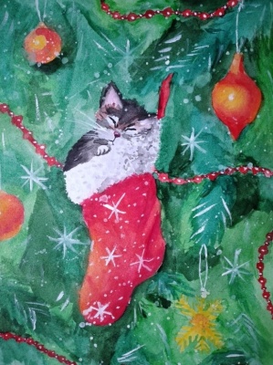 Решила Оксану нарисовать, опираясь лишь на текст. Она готовилась идти колядовать - цветов на голове быть не может (и откуда их взять в декабре?). Плахта и запаска на ней полтавские.