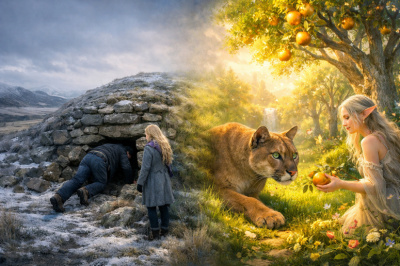 Сотканное словно из туманного вечернего неба платье идеально подчеркнуло хрупкую фигуру. Сапфировый оттенок переливался серебристыми искрами, полупрозрачные рукава и ниспадающие к ногам воланы создавали вокруг девушки едва уловимую, почти призрачную дымку. Ассиметричный подол деликатно приоткрывал тонкую линию ноги. Всё это дополнял декор из золотых бабочек, рассы