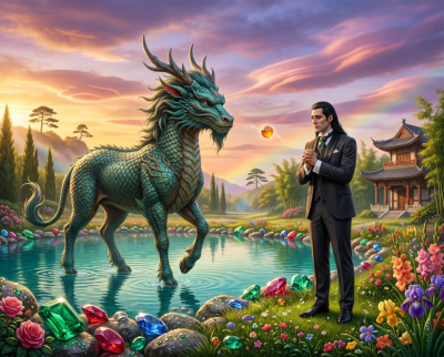 Гарри Поттер шагнул в круг света, но это был не тот мальчик, которого все знали. Его движения были плавными, уверенными, почти змеиными. Очки на его лице отражали мерцание факелов, но за стёклами не было привычных зелёных глаз — лишь бездонная чернота, поглотившая белки и радужки. Эта тьма смотрела прямо на тролля, и в ней читалась не детская ярость, а древняя, холодная мощь.