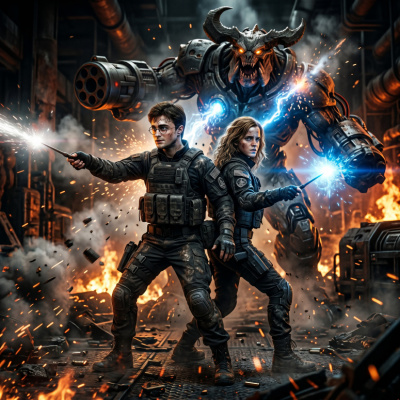 Сырой, холодный воздух туалета в подземельях Хогвартса был наполнен запахом плесени и страха. В центре зала, освещённого лишь тусклым светом магических факелов, стоял злобный горный тролль. Его массивное тело, покрытое бугристой кожей, отбрасывало уродливые тени на каменные стены. В одной руке он сжимал грубую дубину, в другой — схваченную за руку Гермиону Грейнджер. Её глаза были широко раскрыты