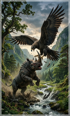 ...птица наконец заметила своего врага, выпустила из когтей ветку и кинулась на каркаданна.