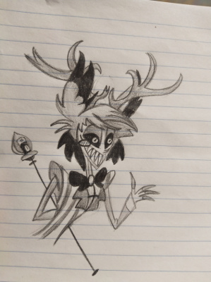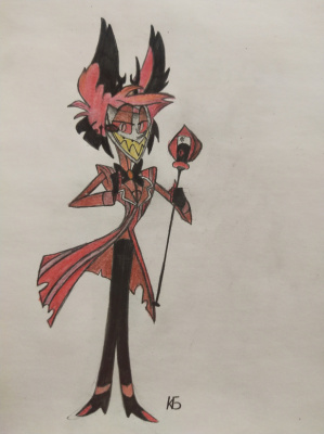 Я нарисовала что-то на подобии обложки к фан-песне про Аластора "Alastor's game".