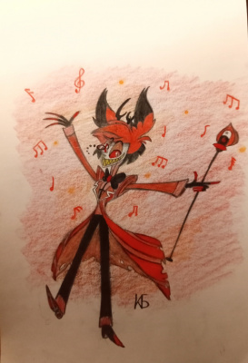 Аластор мой любимый персонаж и я в основном рисую его.Нахлынуло вдохно-