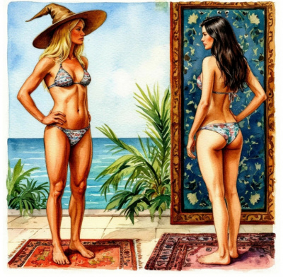 ...>>ing the magical aura. Style reminiscent of vintage illustration and surrealism, inspired by Remedios Varo and Leonora Carrington.
