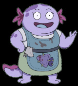 Саламандра с высшим образованием, вынуждена зарабатывать коридорной в отеле. Подружилась с Прутиком после борьбы с ним за королевскую кредитную карту.