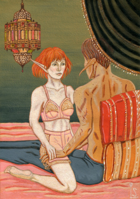 ...>> была серия работ, связанная с Мальтазаром и Селенией, но тогда я изобразила их в таких образах, как "Сливки общества", "Ковбой и всадница", "Индиана Джонс и Уилли Скотт" (в светлом золотистом наряде индийской принцессы). Я думала об образах Имхотепа и Анксунамун из первой "Мумии", но не знала, стоит ли браться или нет. Конечно, персонажи культовые и узнаваемые, но судьба у них довольно печальная.