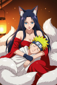 Девятихвостый демон-лис, созданный Хагоромо Ооцуцуки. Хаширами Сенджу (Первый Хокаге) запечатал зверя внутри Мито Узумаки, своей жены, которая стала его первым джинчурики. На старости лет она передала статус джинчурики другому члену её клана, Кушине Узумаки, которая впоследствии стала женой Минато Намиказе, Четвертого Хокаге. Минато перед смертью запечатал в себя Инь-половину Курамы, став третьим джинчурики, а в Наруто Узумаки — Ян-половину Кьюби. В конце Четвертой мировой войны шиноби две половины объединились в Наруто.