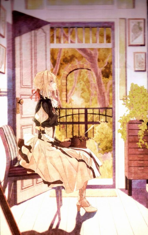 Вайолет Эвергарден (Violet Evergarden; 2015)Главная героиня Вайолет Эвергарден работает на почте. Вот только она вовсе не простая девушка, она — автозапоминающая кукла. Изначально маленьких роботов с таким названием начал создавать много лет назад профессор Орландо, чтобы помочь своей жене, которая стремительно теряла зрение. Вскоре эти куклы стали столь популярны среди компаний, что профессор продал права на них. Сейчас так называют молодых девушек, выполняющих те же функции, что и когда-то те роботы. В ранобэ описаны удивительная жизнь и прошлое Вайолет, покрытое тайной.