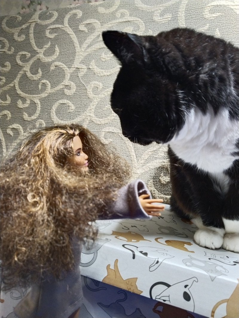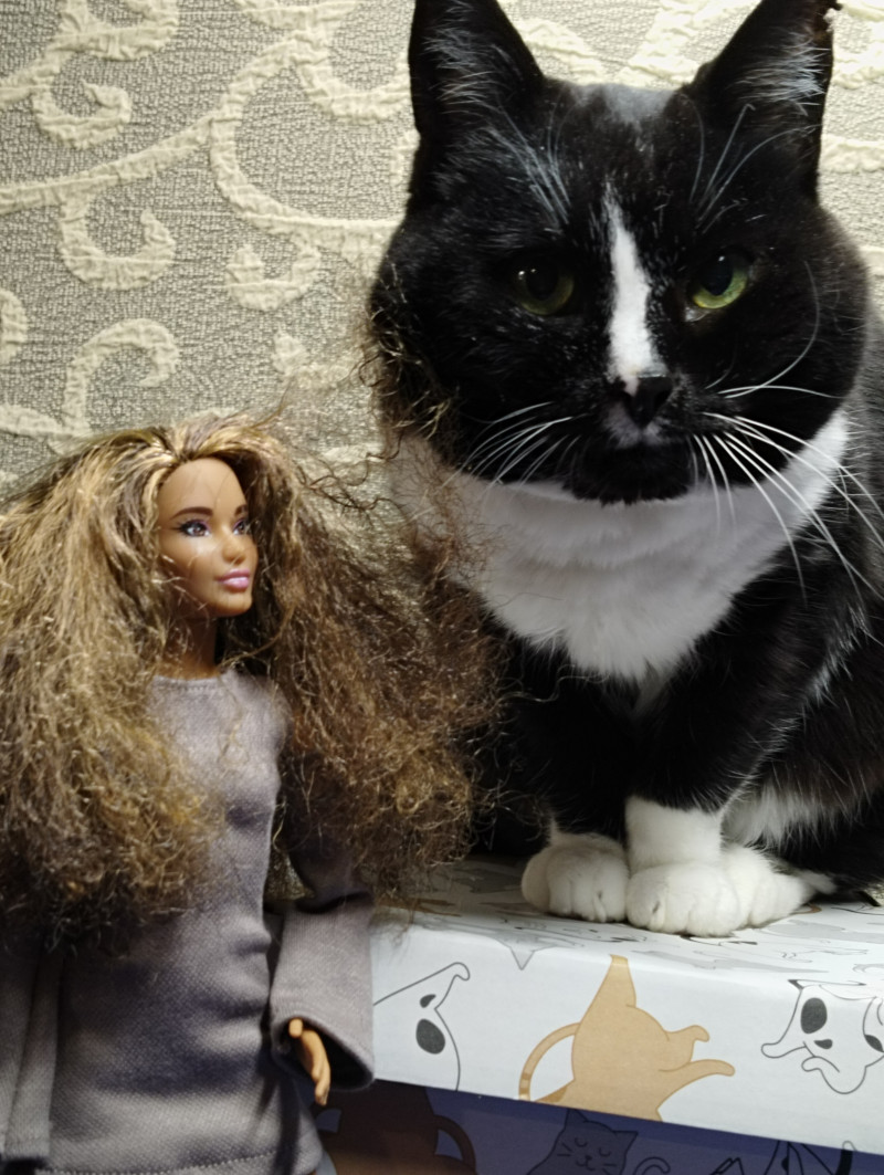 Она уже караулит, когда я кукол буду фотать и прыгает в центр 😂