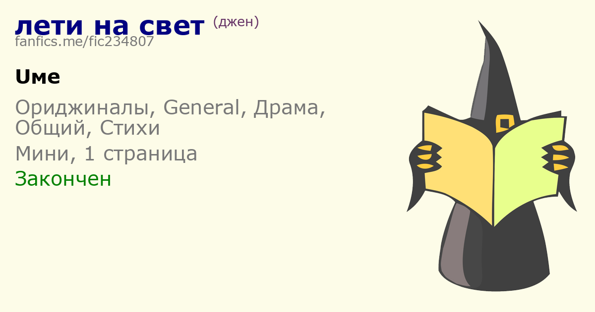 Шапка фанфика в текстовом виде