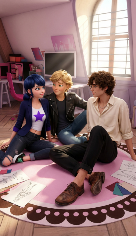 Адриан, Маринетт, Маттьё Лоран...когда-нибудь после событий ФФ сидят, помирившись и разобравшись друг с другом.