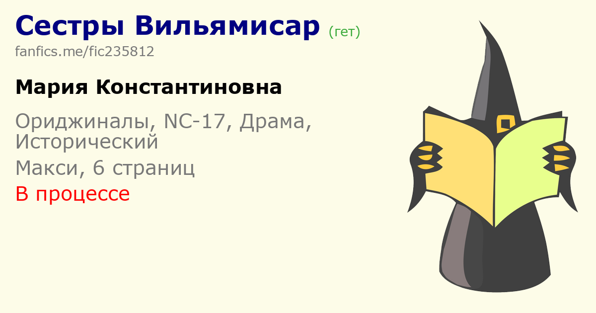 Пока я позиционирую фанфик как ориджинал, позднее планирую создать фандом "Сестры Вильямисар" и включить свой труд в данный фандом.