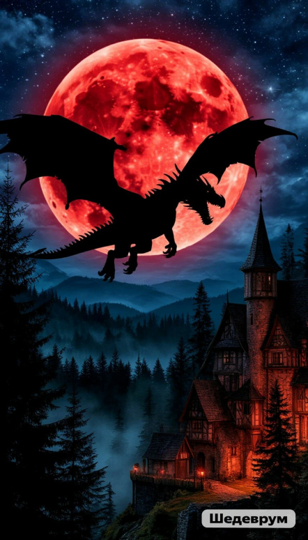 Дракон в ночном небе - нейросеть "Шедеврум"