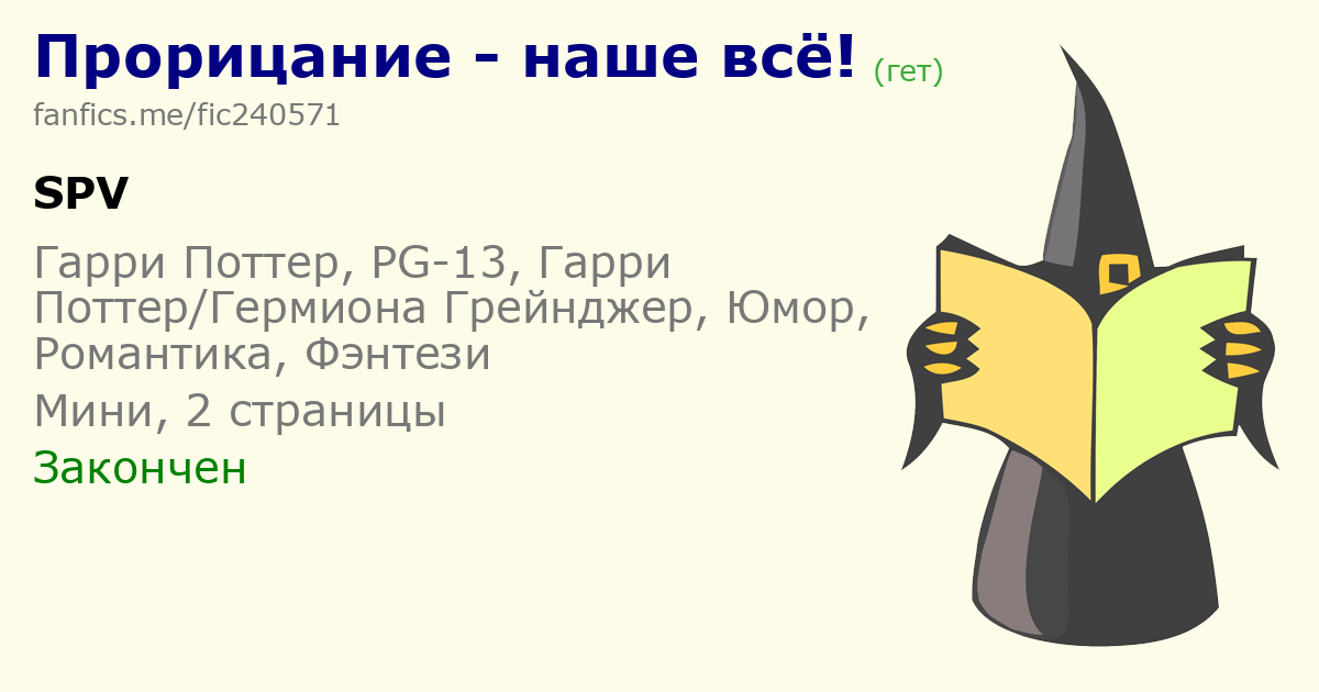 Так предсказания не делаются... Надо бы оставить хоть капельку для случая. Например: имя которой начинается на "Гер-", а оканчивается на "-она". Будь это хотя б миди, то наверное, так бы и сделал. А так нужно чтоб наверняка)И вот через неделю в Хогвартсе появляется новая ученица - Гергиона... 2 |
