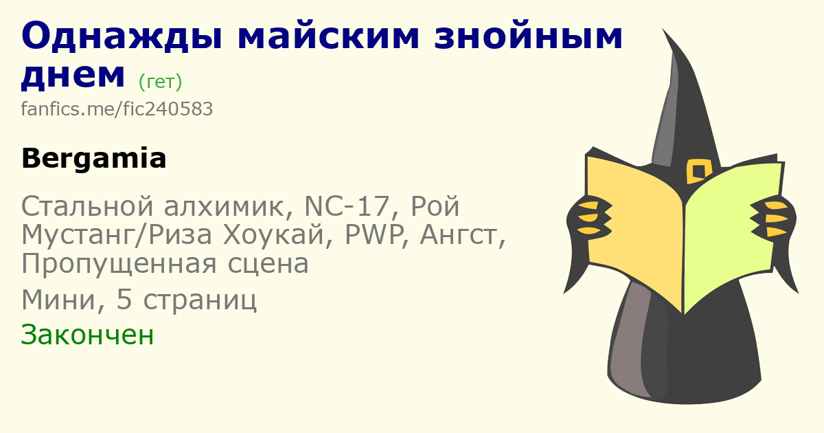 Знойный майский день. Любимая работая, которую ни в коем случае нельзя отложить. И, конечно же, верный помощник Лиза Хоукай. Рецепт хорошего, или, может быть, даже лучшего дня в жизни Роя Мустанга.