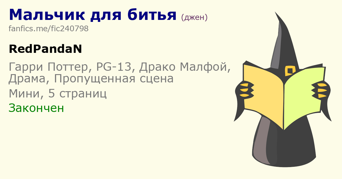 Шапка фанфика в текстовом виде