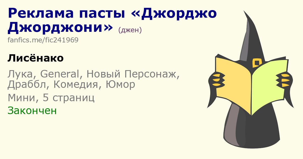 Шапка фанфика в текстовом виде