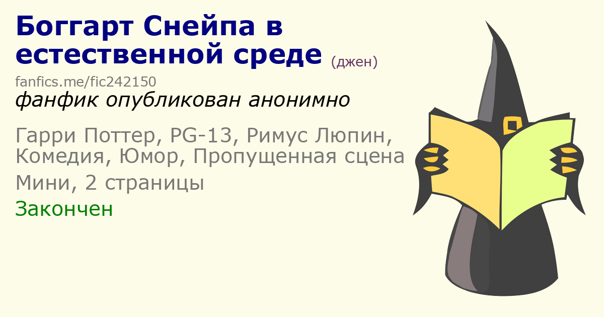 Шапка фанфика в текстовом виде