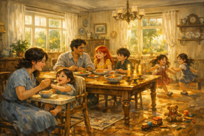 Или как Гарри организовал в одном из двориков башни иллюзию ночного неба под магическим тентом, чтобы приглашённые Уизли, Гринграссы и Делакуры могли спокойно пить вино с вампиршами, не опасаясь, что те внезапно поджарятся в лучах заката.