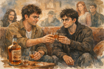 Джеймс наливает Гарри огненный виски, знакомясь с сыном