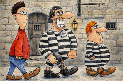 стажёр Поттер конвоирует заключённых Эйвери и Мальсибера в допросную комнату