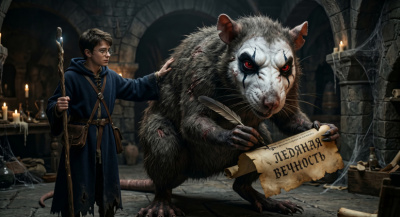 Гарри Поттер шагнул в круг света, но это был не тот мальчик, которого все знали. Его движения были плавными, уверенными, почти змеиными. Очки на его лице отражали мерцание факелов, но за стёклами не было привычных зелёных глаз — лишь бездонная чернота, поглотившая белки и радужки. Эта тьма смотрела прямо на тролля, и в ней читалась не детская ярость, а древняя, холодная мощь.