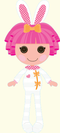 Очень энергичная и прыгучая Лалалулпси. Она буквально сгусток энергии. Обожает сладости, но не делится ими. Сшита из тапочек в виде зайчиков. Питомец — Цыплёнок.